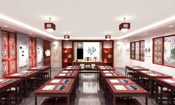 ? 營造整體傳統(tǒng)文化環(huán)境氛圍,整體設(shè)計以教學為本,配合空間設(shè)計手法,實現(xiàn)中國傳統(tǒng)文化教室學科特色,藝術(shù)特色!