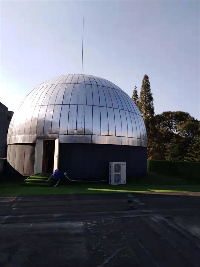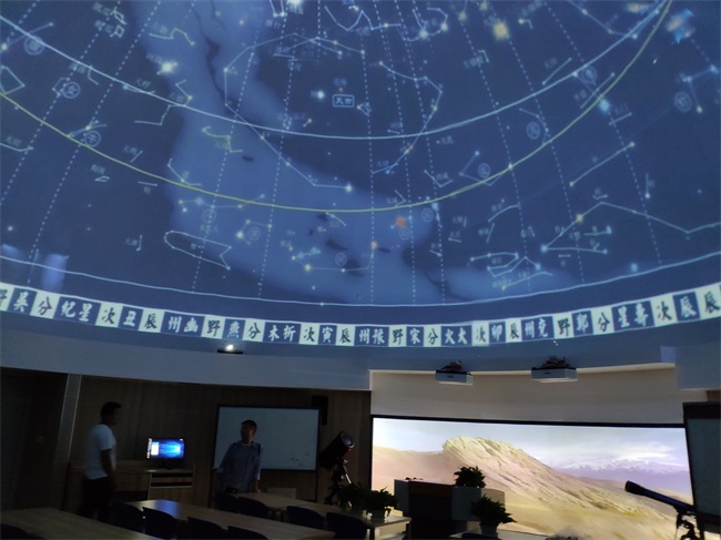 天象館由集光、機、電于一體的數(shù)字天象儀和球形天幕組成,羿飛建造的這間天象館,球形天幕直徑達10米,那些恒星、行星及其他各式各樣的天體,它們的樣貌和運行過程會被如實地投影至這巨大的穹頂之上。日月星辰的升降運動、行星在恒星中穿行、地球自轉軸的歲差運動等,直觀逼真,生動有趣。