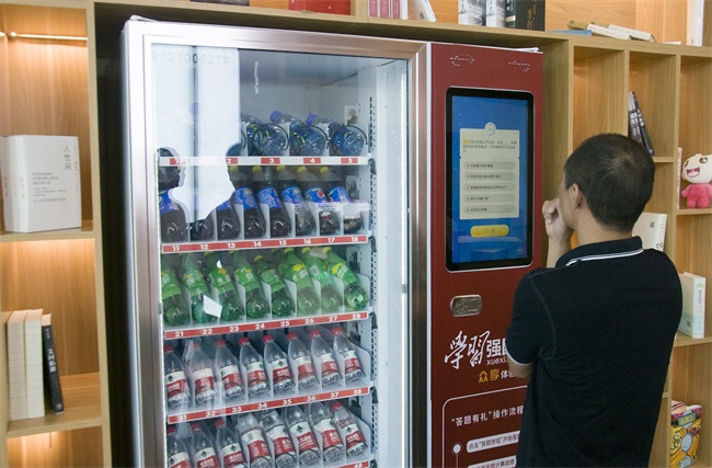 羿飛教育在此區(qū)域設(shè)置了學(xué)習(xí)強(qiáng)國(guó)答題一體機(jī)與答題飲料機(jī),通過(guò)互動(dòng)答題檢驗(yàn)學(xué)習(xí)強(qiáng)國(guó)的學(xué)習(xí)成果,更能贏取免費(fèi)飲料,新穎的體驗(yàn)?zāi)J阶尶疾靾F(tuán)忍俊不禁。