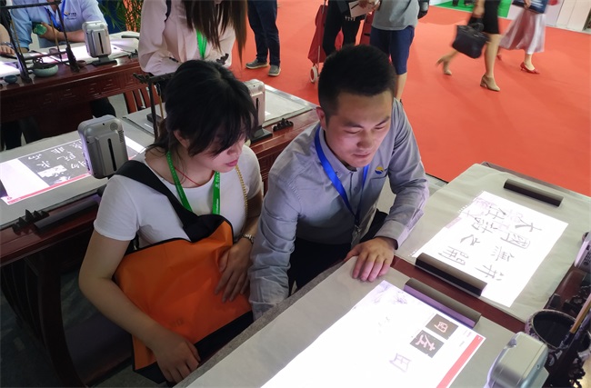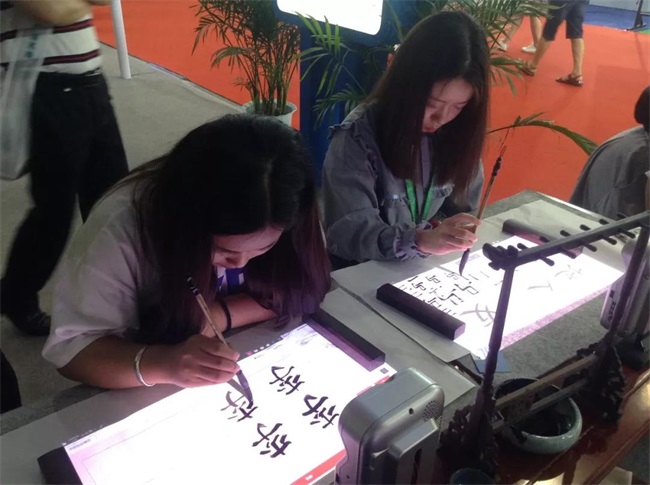 開(kāi)展期間,羿飛翰墨派書(shū)法教室座無(wú)虛席,第二代翰墨派書(shū)法教學(xué)系統(tǒng)的首次公開(kāi)亮相,優(yōu)秀的書(shū)寫(xiě)體驗(yàn)可謂征服全場(chǎng)。