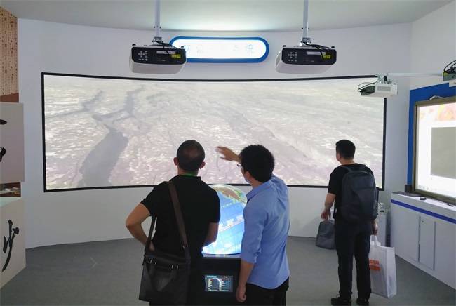 羿飛教育的展區(qū)位于N3館018號(hào),本屆展會(huì)為大家?guī)?lái)了多款升級(jí)新品,包括首次公開(kāi)亮相的第二代翰墨派書(shū)法教學(xué)系統(tǒng)、全新VR地理教學(xué)系統(tǒng)等。此外,羿飛教育繼續(xù)領(lǐng)跑數(shù)字化專用教室,多款明星產(chǎn)品也再次與大家見(jiàn)面,數(shù)字立體地形、數(shù)字化歷史沿革系統(tǒng)、AR地理沙盤(pán)……豐富的展項(xiàng),更優(yōu)的體驗(yàn),吸引了眾多參觀者駐足。