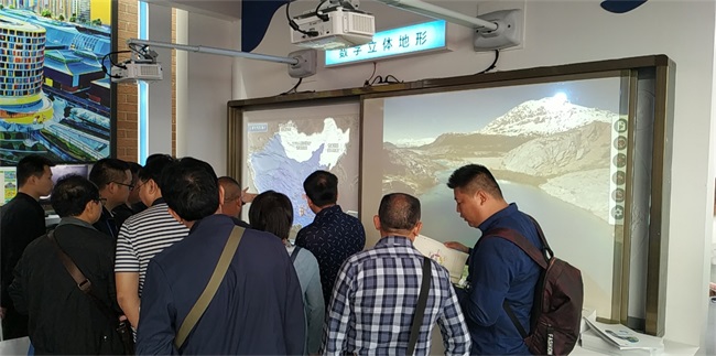 羿飛數(shù)字化地理專用教室集現(xiàn)代地理教育技術(shù)最新成果之大成,現(xiàn)場展出了多媒體超半球互動(dòng)球幕投影演示儀、數(shù)字立體地形、天文演示儀、地理微課堂、數(shù)字模型、交互式3D多媒體教學(xué)系統(tǒng)等教學(xué)設(shè)備,囊括地理教學(xué)的方方面面。