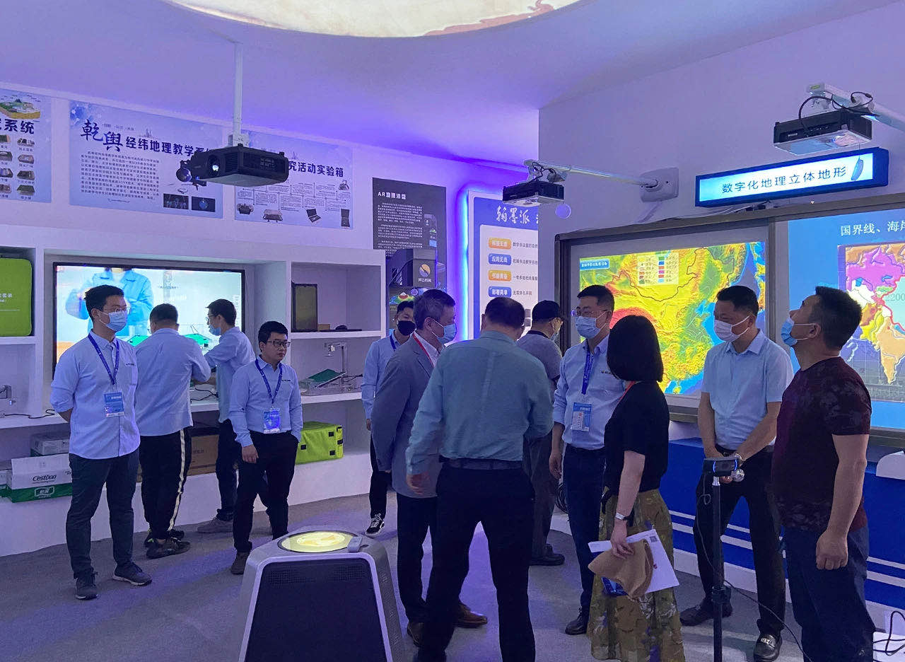 地理展區(qū)展出了環(huán)幕示教系統(tǒng)、數(shù)字立體地形、AR地理沙盤、天文演示儀、3D數(shù)字模型、AR地球儀等貼合教學(xué)的一系列產(chǎn)品,都是老朋友,當(dāng)然也有部分功能的升級。